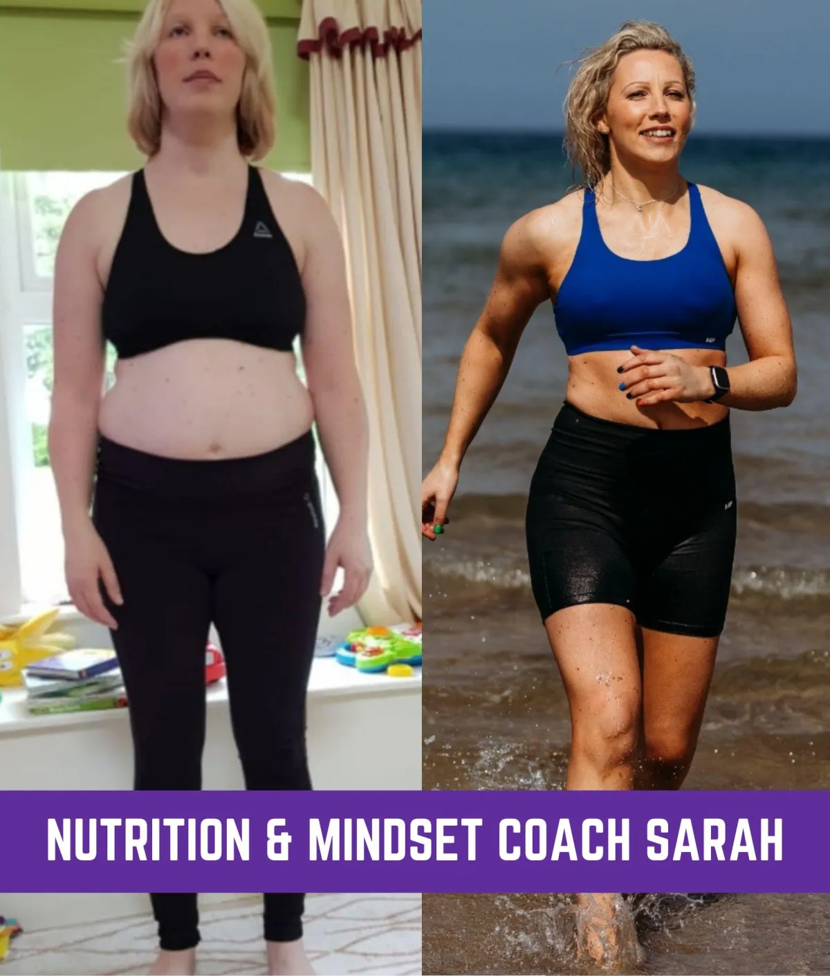 Coach Sarah has has lost over 55lbs herself, is a Precision Nutrition Coach, and qualified NHS Psychotherapist, and combines psychological coaching with practical nutrition coaching, to change your relationship with food, fitness, and your body!