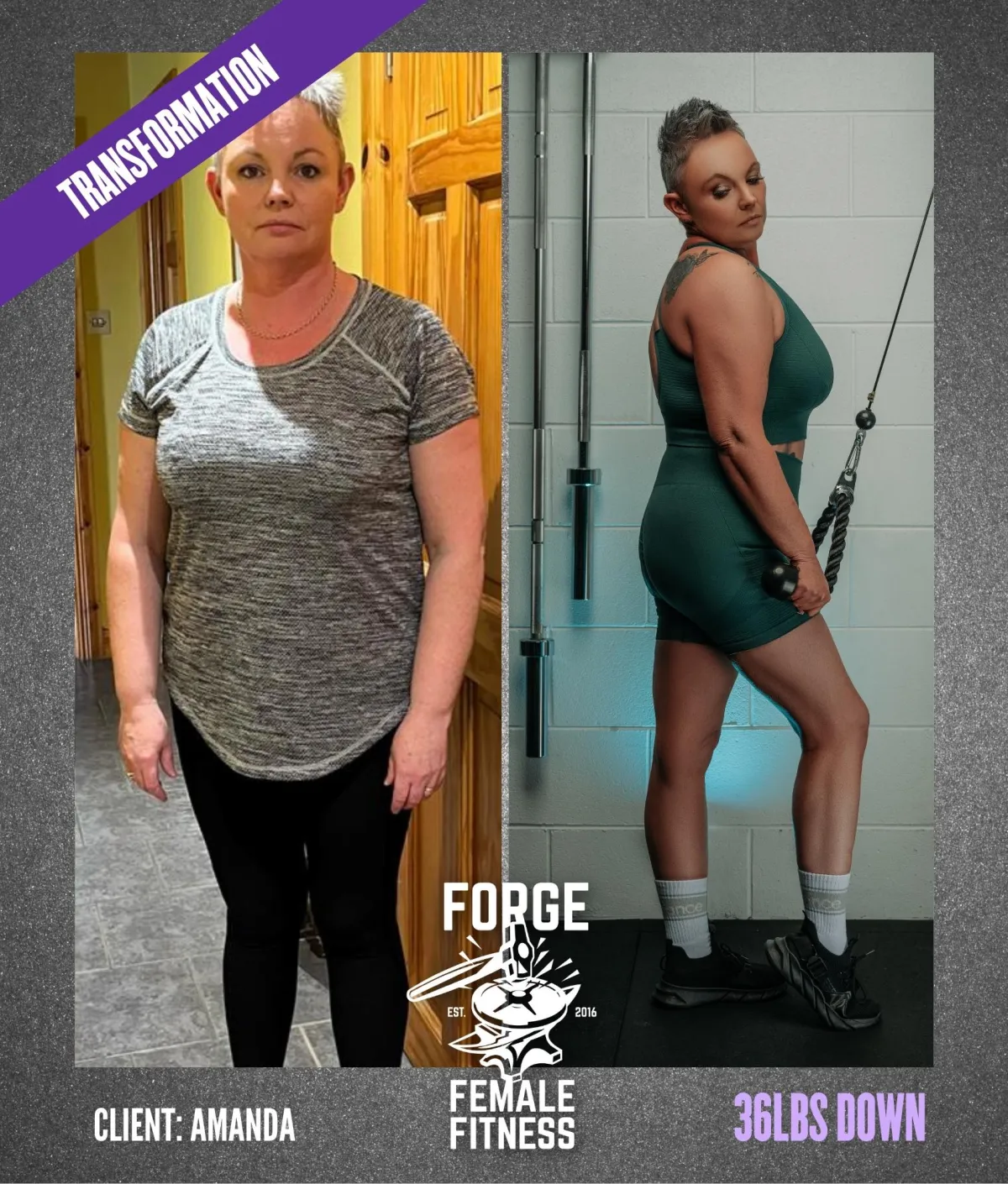 Founder & Head Coach Grace lost 156lbs, founded the Forge, won Best Female Personal Trainer Northern Ireland twice, set a World Record on the Assault Bike, won national titles in Weightlifting and Cycling. Grace embodies being your own hero!